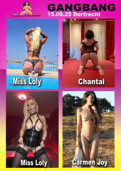 Heute kommt uns die sagenhafte Carmen Joy. Sie ist eine unersättliche nymphomane Schönheit wer Sie kennt weiß was in ihn erwartet sie ist ein nimmersattes Luder und sie kann es kaum erwarten von euch hart ran genommen zu werden. Und lasst es euch nicht entgehen, die süße Miss Loly und die rassige Schönheit Chantal werden euch richtig einheizen und euch mehrmals täglich Showaction bieten.